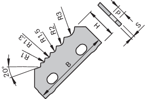 | R = Radius | 20°; 1; 1,3; 1,5; 2; 3 [mm] | |